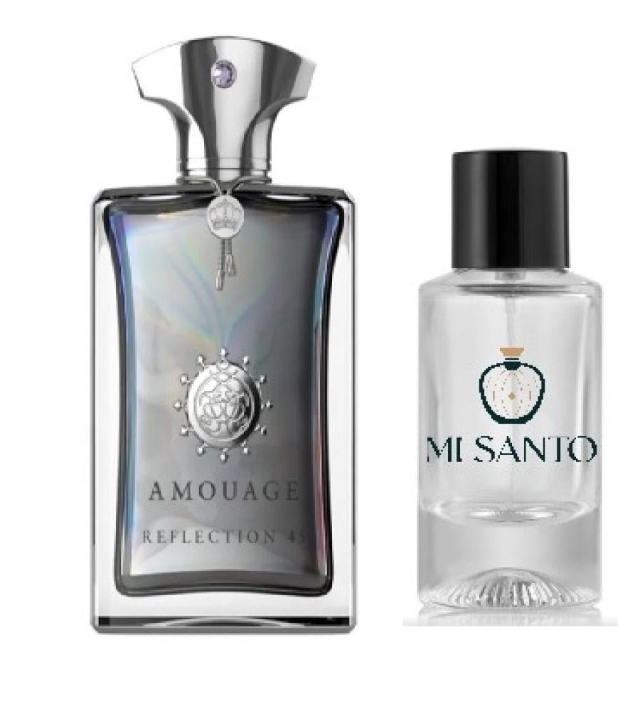 عطر شرقي - حار للرجال . هذا عطر جديد Reflection 45 صدر عام 2021. Lucas Sieuzac قام بتوقيع هذا العطر. إفتتاحية العطر الخزامي, البنزوين - الجاوي, توت العرعر, المريمية, الهيل و الفلفل الوردي; قلب العطر السوسن, الياسمين, النيرولي, حبوب التونكا, الفانيليا و الأنجيليكا; قاعدة العطر تتكون من اللبان, المر, الجاوشير, خشب الصندل, الباتشولي, خشب الأرز و نجيل الهند.