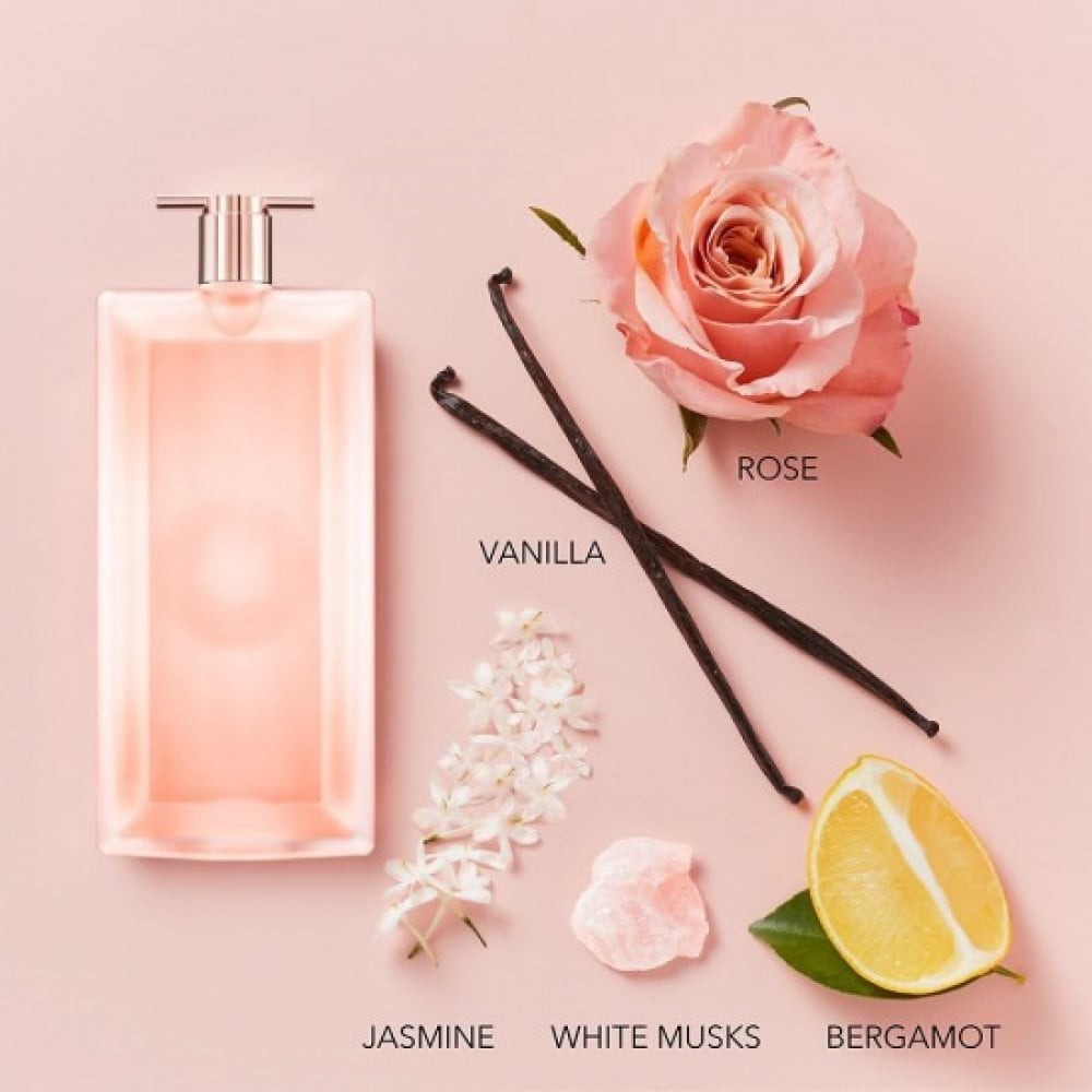 - المكونات: البرغموت (الحمضيات)، الكمثرى العصير، الفلفل الوردي، الورد والياسمين، المسك الأبيض، الفانيليا، الباتشولي، خشب الأرز